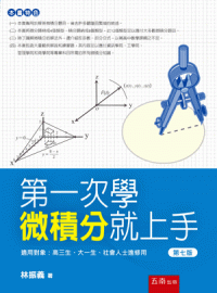 《第一次學微積分就上手》是以專用於解答微積分題目為主旨,為了避免太多的敘述讓讀著抓不到重點,因此本書省去眾多嚴謹且繁瑣的敘述。