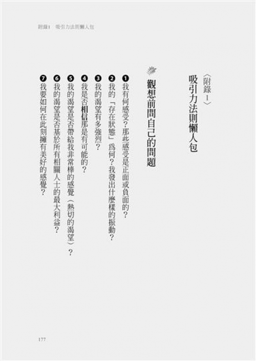 ◎這本書將整個吸引力法則以一種簡潔的方式濃縮呈現,寫得很好、很清楚,一點累贅都沒有。