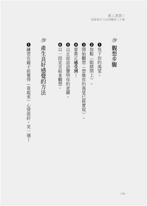 本書沒有玄妙的文字、沒有艱澀難懂的概念,且能讓你一步步照做,親身體驗心想事成的美好!