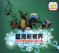 2008臺灣新視界國情資料幻燈光碟片集,按(一)「台灣新政治運動─2008總統大選」(二)「經濟里程碑」(三)「社會關懷」(四)「節慶禮讚」(五)「文藝特區」(六)「自然景觀—台灣特殊地理景觀」(七)「休閒與農業」(八)「部落閣一(原住民創意產業)」(九)「部落閣二(台灣鐵道巡禮)」(十)「部落閣三(吾愛吾鄉)」(十一)「部落閣四(蘭花王國)」等11項主題分類,共計選出101張,以圖片記錄年度國情發展現況。該光碟片內容除含蓋前述11類主題圖片導覽外,並有專供印刷用途之電子圖檔,其中導覽部分設有中、英、西、法、德、日、阿、俄等8種語版可供點選瀏。