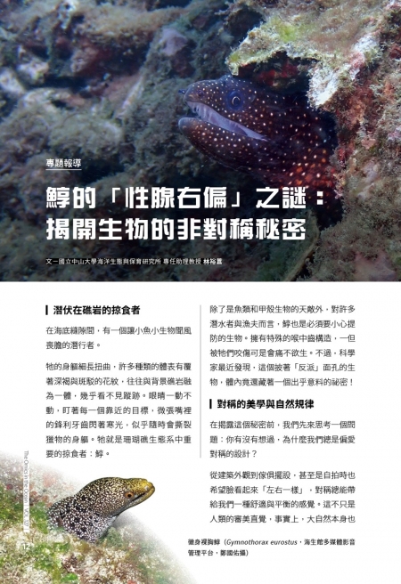 ★專題報導〈鯙的「性腺右偏」之謎:揭開生物的非對稱秘密〉-國立中山大學海洋生態與保育研究所 專任助理教授 林裕䕒