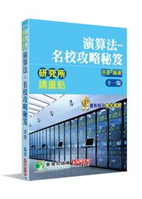 本書是根據演算法考試中最重要的考題主軸來進行編寫。雖然演算法看似不可捉模,卻仍有清晰的脈絡可尋。為了讓同學們在最短的時間內了解演算法的架構及規律,進而取得理想的分數,我們將著重於幫助同學建立演算法的基本架構、了解每一個內容。針對台大、清大、交大、成大、中央等各大名校的演算法考題,我們亦做最深入淺出而不失嚴謹的探討及剖析,考生們可以藉此結合所學、訓練實戰經驗。對於初次接觸演算法的新手來說,若能夠詳閱本書的內容並融會貫通,便能夠在最短的時間內打通任督二脈,達到強迫取分、輕鬆榮登各校金榜的目的。