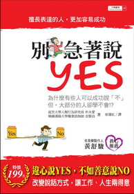 為了事業的成功和人生的幸福,不要急著說YES!在關鍵時刻成功說NO,才能贏得好結果 一個和諧的人際關係不是與他人好好相處,而是各自以獨立的個體維持平等的關係,維持平等關係最重要的就是「不要急著說YES!」,我們要說真話來保護自己,並把自己的想法、意向、性格傳達給對方,使對方認同且承認自己。 本書從四大篇章出發,希望對那些善良但因不懂得說「不」技巧而傷腦筋的人帶來一些幫助。1、不勉強說「好」,才有美好人生給濫好人的忠告:把握機會做出正確選擇2、如果害怕說真話,就換個想法吧給濫好人的忠告:說出真話能減輕長期的壓力3、既鄭重又果斷的表達技巧給濫好人的忠告:為了對方要勇敢說出真話4、關鍵時刻成功表達的七個步驟給濫好人的忠告:勉強說了yes,別後悔要反省