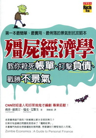 ◎加拿大RateSupermarket.ca 2011年夏季選書:「有幽默感!殭屍經濟學教你在如何提升和生存的最佳方法,如果你為承擔財務感到吃力,這絕對是你要看的書,而且他讓你遠離財經書的枯燥,卻仍幫你Hold住金錢。」◎CNN財經達人和好萊塢鬼才編劇 專業鉅獻,堪稱全球第一本結合殭屍小說和共同理財的財經書!第一本最簡單、最實用、最俐落的景氣對抗攻略本老是覺得錢不夠用?對帳單比薪水多感到無力?如果你有這樣的問題就是感染了「殭屍經濟」,本書專門為那些想要擺脫財務問題、想要讓財力變堅強的人所寫。兩個問題你必須要知道:何為殭屍經濟(Zombie Economy)?泛指當今金融渾沌不明的年代。何為殭屍經濟學 (Zombie Economics)?是一門最簡單、最直接了當的財務求生守則,她教我們如何度過這困頓經濟的所有技能和方法。多數人都對不景氣沒有太大的概念,所以依然用好年冬的消費模式在過生活,完全忽略這樣的花錢方式會為自己帶來莫大的財務風險。這就好像被一堆帳單、一堆消費形成的殭屍包圍而不自知。隨著家門外的殭屍越多,有些人還天真的以為只要將門窗關緊、把門鎖好,求神拜佛的希望「活死人」快速消失,但他們卻只會越變越多,直到榨乾你為止。切記!面對殭屍經濟,不會有人前來救你,唯一的生存之道就是自救。是的,你得面對現實,釐清自己當前的財務狀況,藉由各式各樣的方法累積財務實力。覺得這樣做很麻煩,沒有關係,只要跟著書中按表操課,你會發現消滅殭屍非常容易,甚至發現自己也有成為富翁的本錢。