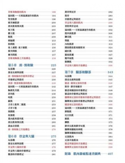 ◎超過1300幅兼具實用與藝術的細緻插畫,呈現206塊骨頭、162條肌肉與33條韌帶,以及110則的身體標記,帶領你一同走進人體旅程。