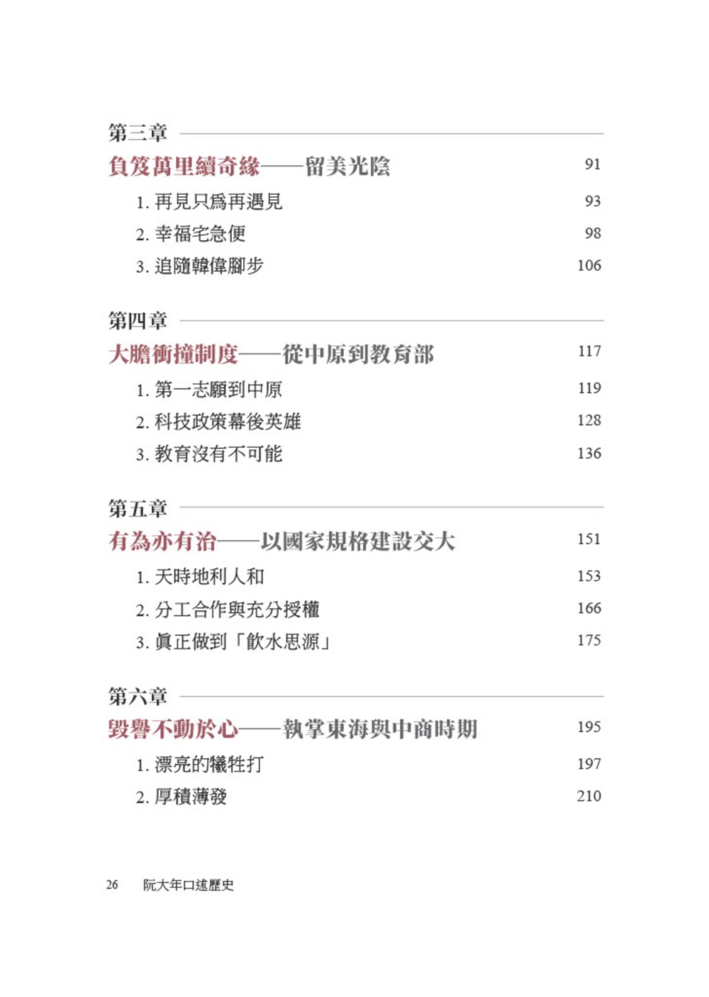 每個章節都非常生動,節奏明快,吸引人繼續往下閱讀,而看到阮大年校長精準掌握時程,精采訴說人生故事,時而幽默、自嘲,時而展現驚人的記憶力,更是不得不佩服阮校長是力行現代「無齡」生活的最佳典範。