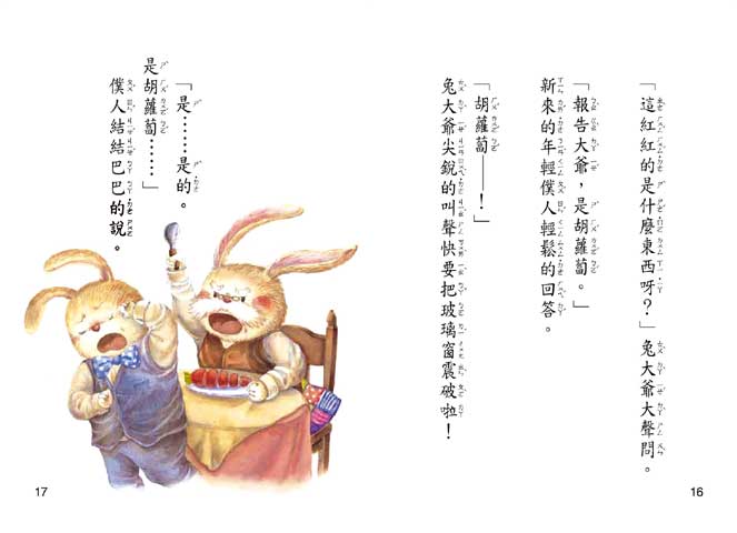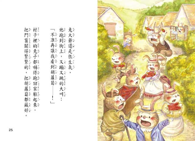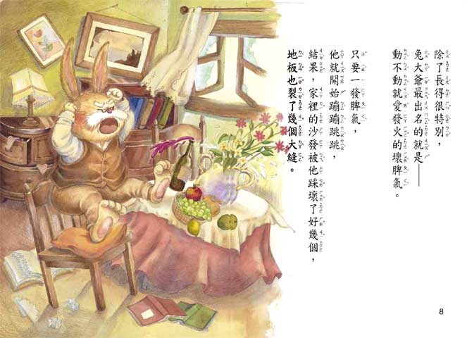 ◎國小低年級以上適讀教育部閱讀磐石獎得主‧臺東縣瑞源國小校長李治國 誠摯推薦一本學習情緒管理的故事書,讓孩子了解生氣的壞處,學會排解負面情緒!誰說兔子一定要吃胡蘿蔔?氣死我了,真的是氣死我了! ~摘錄自〈兔大爺抓狂名言錄〉兔子村裡的兔大爺,脾氣是出了名的火爆,任何一件小事,都可以讓他氣得暴跳半天。在兔大爺嚇走第101位僕人後,大家看見他,全都能閃多遠就閃多遠,不敢靠近方圓一百公尺以內。兔大爺看見大家這麼躲他,起初還洋洋得意,但日子久了,就覺得周圍真的是太安靜了,安靜到……有點孤單。有誰可以鼓起勇氣敲敲他的門,治治他的壞脾氣呢?「樂讀123」是一套啟蒙閱讀、扎根國語文教育基礎的入門書,也是為國小一~二年級小朋友企畫的、適合自主閱讀的橋梁書――‧快樂閱讀、寓教於讀――精選小讀者喜愛、深具教育意義的童話或小故事,融入小朋友熟悉的生活經驗和場景。每一作品皆融合一個品格教育主題,用字遣詞亦貼心考量低年級讀者的閱讀能力。‧圖文比為1:1――大量圖像表現讓習慣閱讀兒童繪本的小讀者倍感親切,輕易可以跨越到字數較多的閱讀領域,有效提升閱讀能力。 ‧每本約3000字――根據低年級小讀者閱讀習慣,以及專注力、耐力和記憶力極限作設定,3000字是閱讀時間最適切、最容易「完整閱讀」的接受量。‧字體盡量加大――考慮閱讀者「多數必須以注音辨識進而學習國字」的需求,字體加大可讓注音更明顯易讀,增加閱讀意願。‧專業精繪插圖――廣邀兒童插畫家依各書主題繪製精美作品,透過視覺引導提供小讀者更廣闊的想像與思考空間,為文字閱讀增添多樣趣味與吸引力。*本系列榮獲「行政院新聞局中小學生優良課外讀物推介」、「好書大家讀入選圖書」、「新北市國民中小學推動閱讀優良圖書推薦」等獎項肯定。本書有學習單,歡迎至福地出版資訊網www.winfortune.com.tw下載。