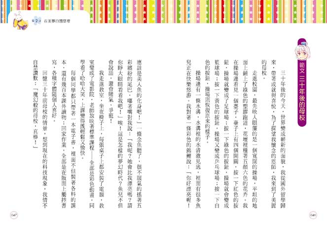 第1課 想像翅膀飛舞吧!科技產品和文學藝術是想像編造的,讓夢想、聯想和幻想精靈展翅飛舞吧!他們會幫你寫出內容豐富、趣味盎然的文章。第2課 在美夢的國度裡沒有夢想的人生,就像黑夜那麼黯淡無光;縱使是稚嫩的小學生,也都要有個像花朵般燦爛的美夢,然後一步步實現它。第3課 異想天開發明家器物發明讓人類生活更方便、幸福,你最想發明的是什麼?愛迪生為什麼是「妖魔」?發明家的故事真有意思耶!第4課 角色扮演真有趣現實生活中,你必須扮演好自己的角色,當個好學生;但在演戲和作文的時候,想當皇帝或乞丐都可以,還真是有趣呢!第5課 現在的神話世界神話充滿神祕色彩,是傳奇、有趣的文學,從遠古的神話,到現在敬拜的神,以及神背後的傳說,都值得我們窺探。第6課 卜卦地球的命運地球長期遭受人類破壞,導致氣候異常,地震、海嘯和洪水等災難頻傳;我不聽信地球毀滅的謠言,但要保護它。第7課 森林動物交響曲作家創作許多有趣的動物童話,充滿道理和智慧;除了閱讀獲得啟發,你也可以拿自己的寵物當主角,寫下動物的精采故事。第8課 花草蔬果的傳奇花草蔬果都是有情物,抒發出許多感人的故事;欣賞水仙花和薰衣草的愛情傳說,再來寫一篇〈水果小姐的選美大賽〉吧!第9課 幫故事換上新衣發揮想像力,在經典故事上增添新的情節,續寫不一樣的結局,是很「魷魚絲」的事;你也來寫一篇〈新龜兔賽跑〉吧!第10課 神奇科技大預言神奇的科技,不斷在改變這個世界;老奶奶利用視訊,解決思念女兒的苦楚。你相信會有「洗腦店」、「抽屜式樓房」嗎?