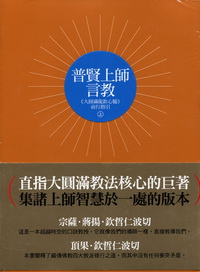 宗薩.蔣揚.欽哲仁波切:這是一本超越時空的口訣教授。它就像我們的導師一樣,直接教導我們。頂果.欽哲仁波切:本書闡釋了藏傳佛教四大教派修行之道,而其中沒有任何衝突矛盾。直指大圓滿教法核心的巨著《普賢上師言教》是《大圓滿龍欽心髓》前行的釋論,而《龍欽心髓》是大伏藏師吉美.林巴尊者在數次的淨境中,從十四世紀的龍欽巴尊者處領受的大圓滿教法。本書作者巴楚仁波切的上師吉美.嘉威.紐古曾追隨吉美.林巴尊者多年,然後才回到東藏康地,依著吉美.林巴尊者的教導持續修行。巴楚仁波切從上師吉美.嘉威.紐古處至少領受過十四次此教法,他將上師的口傳教法樸實地記錄下來,為的是要讓這些教導成為能夠幫修行者檢視自己,以找出隱藏的過失,修正自心,並將心安置在正確的道上。這部經典巨著是藏傳佛教許多偉大上師隨身的日常讀物,也是他們極力推薦給修行者的一本實修指導手冊。集諸上師智慧於一處的版本 本書中文版譯自蓮師翻譯小組所譯的英譯本《The Words of My Perfect Teacher》。由貝瑪.旺嘉仁波切所指導的蓮師翻譯小組在英譯此書時,受到此教法傳承的核心上師們如:敦珠仁波切、頂果.欽哲仁波切、甘珠爾仁波切、紐舒.堪布仁波切等的口授傳承與加持。在翻譯的過程中,諸位上師更不斷地就書中艱深之處給予小組成員直接指導,因此該英譯本得以完整地保持此教法的精髓與正確性。更精采的是,這些證悟上師們針對艱深處的精闢開示或解說論述,都被貼切地保留在書後的注釋中,成為與本文互相輝映的珍貴智慧精華。《普賢上師言教》是《龍欽心髓》(Longchen Nyingthig)前行的經典釋論。《龍欽心髓》涵蓋了所有的教法,包括提供給三種領悟層次的修行者法道上的次第(Steps of the Path),以及法道上的三主題(Three Main Themes of the Path);也包括了三種顯相(Three Perceptions)、道(Path)與果(Fruit)的前行,更包括了佛性為因、珍貴人身為支持、善知識為動力、教法為方便,以及三身與智慧為果報──這些代表了噶當巴(Kadampa)與大手印(MahAmudrA)傳承的?流。此外,也包括了寧瑪派的修持,即經由厭棄輪迴而出離,經由確信業果而產生信心,經由努力幫助他人而生起菩提心,以及對一切事物絕對純淨的淨觀。本書《普賢上師言教》中文版翻譯自蓮師翻譯小組(Padmakara Translation Group)的英譯本《The Words of My Perfect Teacher》。譯者姚仁喜的上師宗薩.蔣揚.欽哲仁波切特為此書作序,並且提供了許多與此法教相關的珍貴唐卡,以及傳承上師的照片。此外,還有加上啟發人心的引文、注釋,以及古典式的插圖,為這本藏傳佛教典型的修行入門書籍增色不少。