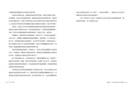 「作者是費雪投資公司的分析師,這本書的出版是為了讓美國投資人知道投資全球的好處,因為美國是一個非常多元且成熟的市場,導致投資人對海外興趣缺缺。對市場規模小的台灣來說,無論為了多元分散風險、或是參與經濟成長掌握合理報酬,投資人更應該擁抱國際市場。這本書很值得一讀!」────台灣ETF投資學院創辦人 李柏鋒